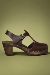 Team your jumpsuits, long hippie dresses or flared jeans with these Highwood T-Strap Leather Clogs in Aubergine Brown! Made of high quality, purple-brown leather featuring a closed round toe and a playful T-strap across the vamp. The wooden sole and heel ensure an authentic look with a typical sixties vibe. These comfy sandals will definitely be your new favourite pair! Love, peace and hippie-ness! 😉