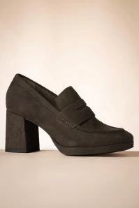 and decorative buttons made of suede. The chunky high heel and soft insole