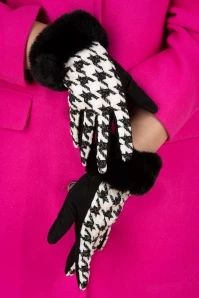 New autumn/winter collection ~ Plain accessories whatever, houndstooth forever! For these gloves, faux suede is paired with a textured fabric in a classic Houndstooth pattern. The gloves are woven with Lurex and finished with faux fur.