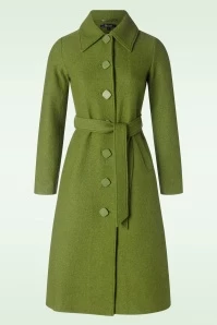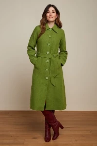 Meet me under the falling leaves! This long coat is a real beauty, but she will also keep you nice and warm because she is made of heavy quality wool (doesn’t stretch) in olive green and is fully lined with a satiny fabric.