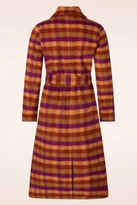 A new winter coat? Check! 😉 This long coat is a real beauty, but she will also keep you nice and warm because she is made of a heavy quality fabric with wool (doesn’t stretch) in a rusty-brown hue that flaunts a check pattern in ochre and purple and is fully lined with a satiny fabric.