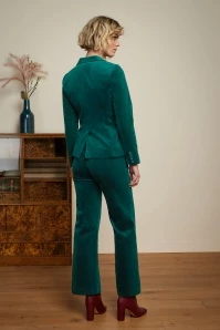 ”All any girl needs, at any time in history, is velvet!” This stunning blazer is made of a firm, yet soft, velvety cotton blend in dark green that is a joy to wear.
