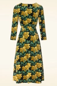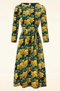 This flowy swing dress is a great outfit choice for both wallflowers and wild flowers! Made of a firm, yet soft and supple, black cotton blend with the look and feel of velvet, a light stretch and a standout floral print.