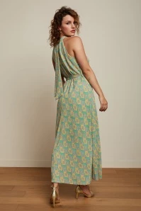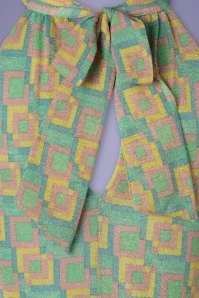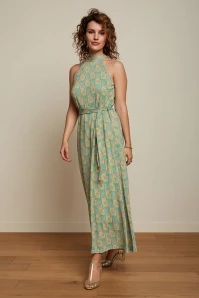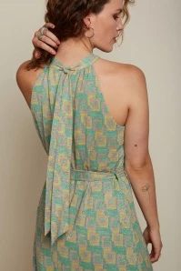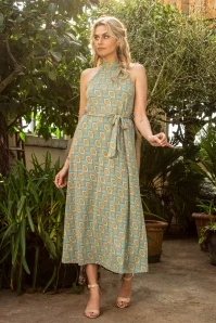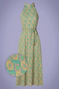Sparkle like you mean it! This Marty Limon Halter Dress in Mint Green is everything you need this season! Her halter top flaunts a keyhole with bow at the back and a detachable tie belt at the waist, from which she runs down into a flowy long skirt. Made of a supple and stretchy, colourful fabric woven with silver-toned glitter and flaunting an eye-catching retro design in green, yellow, pink and blue. Summer ready in 3… 2… 1…
