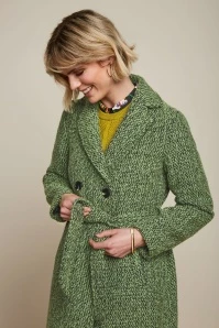 Ruining your fab outfit by pairing it with a boring everyday coat? NO WAY! Please allow us to introduce Robin! Made of a firm, yet supple and soft, bouclé fabric in a green/black colourway and fully lined with a satiny fabric.
