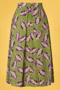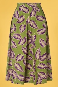 I’m going on vacation and I’m bringing… this Suzette Dominica Pleat Skirt in Woodbine Green! She is worn at the waist and runs into a flattering semi-swing skirt with knife pleating. Made of a supple cotton/viscose blend (doesn’t stretch) in pear green featuring a fabulous design of tropical leaves in purple and cream. Pair with cute sandals and a matching top for a look that is perfect for those warmer summer days!