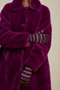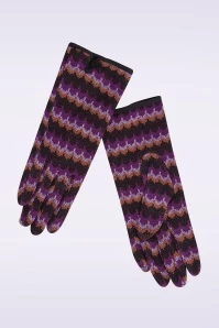 New autumn/winter collection ~ Complete your vintage winter look with these classy gloves. Made of a lovely soft and stretchy, purple acrylic featuring a retro zigzag design. Subtle glitter, black piping and a button at the wrist complete the look.
