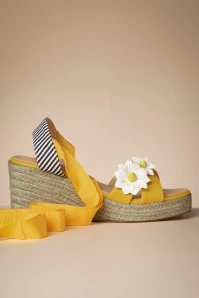 Lift your (spring) outfits to new fashion heights with these Lady Daisy Wedges in Yellow! A great alternative to regular high heels because these wedges elongate your legs while also ensuring a comfy fit. Made of sunny-yellow faux leather styled with tie straps that you can elegantly wrap around your ankles, beautiful daisies across the vamp and of course the signature raffia wedge base. Oopsie Daisy, added them to my cart already! 😉