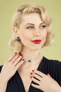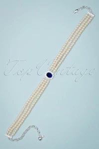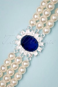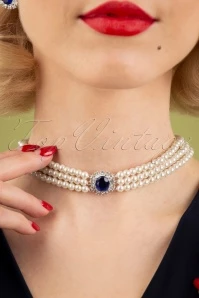 items with a contemporary look. This was the inspiration for this Lady Diana Pearl Choker Necklace in Sapphire Blue. A silver-toned, hypo-allergenic and handmade choker-style necklace flaunting 3 rows of ivory-coloured faux pearls and a sapphire-blue stone encircled with sparkling rhinestones for a glamorous