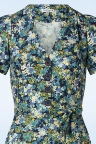 Add a touch of vintage flair to your summer wardrobe with this Magnolia My Fair Lady Dress in Blue! She features a V-neckline, short puff sleeves and a row of large buttons. The tie belt accentuates your waist, creating a super feminine silhouette. Made of a supple and breezy, dark-blue viscose (doesn’t stretch) with a dainty, painterly floral design. “I feel pretty, oh, so pretty, I feel pretty and witty and bright!”