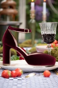 feel of velvet, finished with an adjustable ankle strap and a chunky high heel.