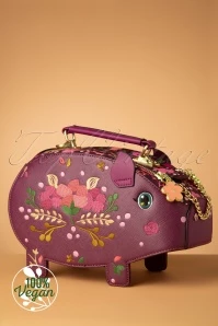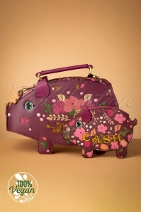 Why are piggy banks so wise?’ They’re filled with common ‘cents’! 😉 This Piggy Bank Grab Bag in Grape Red is shaped like a piggy bank and made of wine-red vegan leather. Hand stitched detailing like the embroidered flowers, the gem stud details on the nose, the ears and the reinforced legs make her a real work of art. She even features a little curly tail and a coin slot at the top… oink, oink!