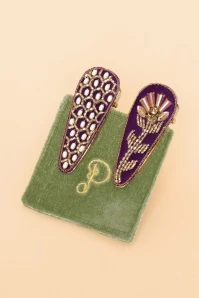 New collection ~ These hairclips are perfect for adding a glamorous touch to your updo or for pinning strands of hair into place. These two sturdy clips are made of gold-toned metal covered in a chic purple fabric, embellished with sequins, stitching and beads. Life isn’t perfect, but your hair can be! 😉