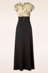 This Rinda Floral Maxi Dress in Black is sure to wow at every occasion! This stunning dress features a fitted, cream-coloured top in a floral design with a pleated surplice neckline, a flattering pleated waist band and a flowy maxi skirt. She is made of a supple and stretchy, black fabric that is a joy to wear. Rinda is dress love to the max(i)!