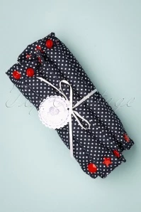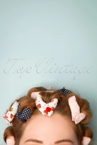soft, navy-blue hair rollers made of 100% cotton scattered with white pin dots. They are comfortable to sleep in while setting to get that gorgeous vintage
