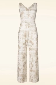 Take a walk on the wild side! This fiercely beautiful jumpsuit is made of an off-white, stretchy fabric that is a dream to wear and flaunts a beige safari design.