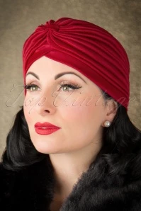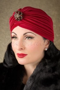 This stylish turban is the answer to bad hair days! Made of stretchy, burgundy-red sateen. Jazz it up with a sparkly brooch or with a beautiful earring, just like we did.