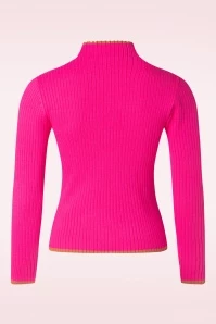 New autumn/winter collection ~ This Sally sweater is the perfect wardrobe basic! Made of a supple and stretchy, ribbed viscose blend in fuchsia pink featuring brown contrast trims.