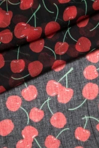This scarf is the cherry on top of your wardrobe sundae! Made of soft, black viscose scattered with juicy red cherries.