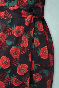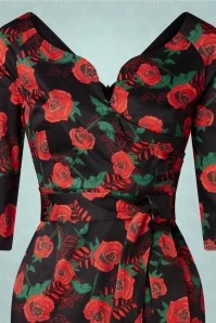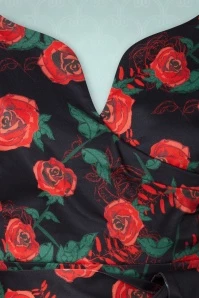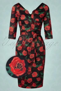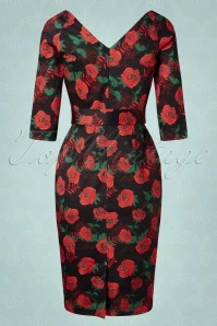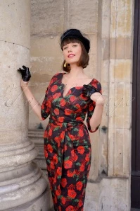 ”I am creating the life of my dreams!” And it goes without saying that while trying to achieve these goals, you will be dressed in a fabulous dress like The Bombshell Roses Pencil Dress in Black! This season our talented in-house designers were inspired by the theme ‘opulence suits you’. And yes, this curvalicious, fifties-inspired pencil dress will give you that luxurious feeling of opulence. The faux-wrap top features a heart-shaped neckline that shows a stunning cleavage without revealing too much. This beauty creates or highlights curves thanks to the combination of flattering side pleats at the waist and the detachable sash. The sturdy, high quality, black cotton blend with a light stretch is adorned with a stunning rose pattern, designed exclusively by Vintage Diva. She kisses your curves, is very flattering and holds you in perfectly. Remember Divas: “There is no shame in living an abundant life!”