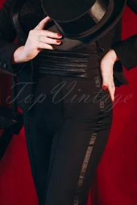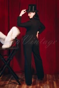 ”I am at heart a gentleman!” Luckily in this day and age, we no longer need to dress in a masculine way to be taken seriously. By wearing trousers you can actually look feminine but still powerful, just look at The Catherine Tuxedo Trousers in Black. For this design our talented in-house designers were inspired by actress and singer Marlene Dietrich who was one of the first women ever to be courageous enough to step out onto the stage dressed in a suit… she made the tux suitable for all! Catherine is high waisted and features a wide waist band, a detachable cummerbund, wide trouser-legs with a classy pin tuck and sateen piping at the sides for that real tuxedo-style look. The smooth and firm, high quality fabric in black incorporates just a hint of stretch, is a joy to wear, ensures a flattering fit and holds you in perfectly. A real statement piece, but of course pairing her with the matching Catherine Tuxedo Blazer will help you create the ultimate power woman look! Just two words Divas… Smoking hot!