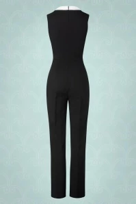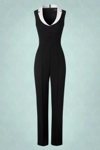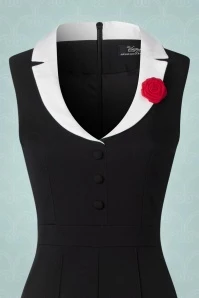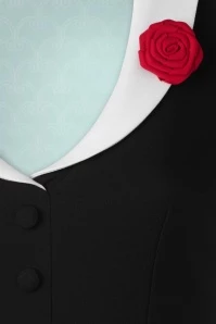 collection. With Luchia they created a summery take on a classic Marlène Dietrich suit! The fitted top is styled with a V-neckline with a white contrast collar, faux buttons down the bodice and a removable red rose corsage that you can place anywhere you want. The black, long, wide trouser-legs styled with a vertical pintuck seam make your legs look endless. The firm, high quality fabric in black incorporates just a hint of stretch and is a joy to wear. Steal the show in this beauty and look just as unforgettable as Marlène herself!