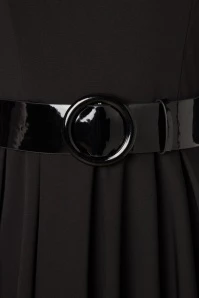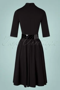 Create a classy autumn look with this 60s Sandra Swing Dress in Black, available exclusively at TopVintage! The fitted bodice features a gorgeous turtleneck, 3/4 sleeves and a shiny lacquer belt with a round sixties buckle. From the waist down she runs into a flattering and flowy swing skirt for a super feminine silhouette. Made of a smooth and supple, black fabric that has a light stretch and is a joy to wear. Classic and super versatile!