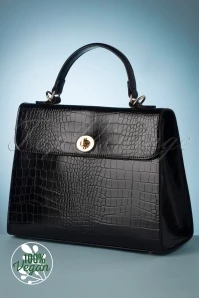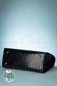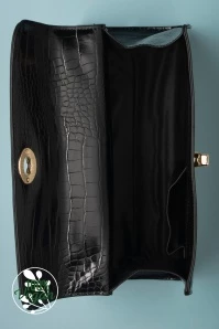 Feel like a million bucks with this elegant, vintage-inspired bag on your arm! She is medium size and made of high quality, crocodile-embossed, black vegan leather with a luxurious look.
