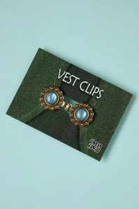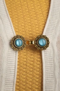 Transform all those cute cardigans, jackets and kimonos without fastening by using these beauties to wear them closed. They also look great with a poncho, scarf or blouse. Made of metal in antique gold tone set with 2 blue stones and finished with handy clips.