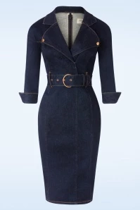 Warning: This denim pencil beauty may increase sass, confidence, and unstoppable curves! She is made of a stunning, dark-blue organic cotton blend designed with authentic dark-yellow stitching and a lovely stretch for a comfy fit.