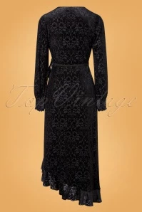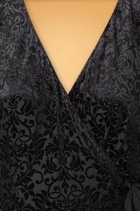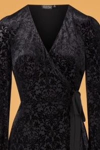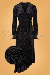 This 50s Diva Maxi Wrap Dress in Black is so divine! This wrap beauty flaunts ruffles, an asymmetric skirt and semi-sheer long puff sleeves. She is made of a supple, semi-sheer and stretchy black fabric featuring a velvet flock pattern and she is lined to ensure she isn’t too revealing. A real statement piece for your wardrobe!