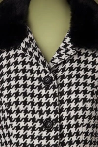 It promises to be a wonderful winter with this 50s Erin Faux Fur Coat in Houndstooth in your wardrobe! She features a stylish, removable black faux fur collar, long sleeves with detachable fluffy cuffs and handy side pockets. From the waist down she runs into a flared semi-swing skirt, so you can easily wear this coat over your favourite dresses. Made of a sturdy, yet supple, woven fabric (doesn’t stretch) in a Houndstooth pattern in ivory white and black and fully lined in black. Warm, stylish and versatile… Erin makes you long for those colder days!