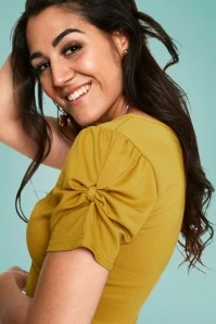 of this 50s Rhiannon Bow Top in Mustard! Rhiannon has everything you could ask