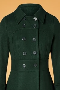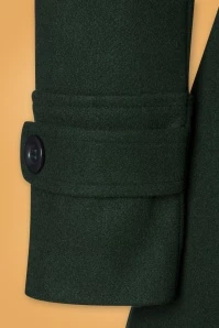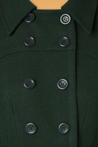 Brave the colder days in style with this 60s Daria Double Breasted Coat in Peacoat Green! A real looker due to her classic double-breasted button closure, her pointy collar and dark-green colour. From the fitted waist band down, she runs into a flattering A-line style. Made of a luxurious, slightly thicker, soft fabric (doesn’t stretch) and fully lined. Elegant and classy, Daria lifts your look to new fashion heights!
