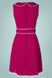 How sweet is this Betty Trim Collared Sixties Dress in Pink?! Flaunting a high, round neckline with a rounded collar, embroidered trims and a detachable waist belt. From the waist down she runs into a flattering A-line skirt with side pockets. Made of a supple, pink fabric (doesn’t stretch) that is a joy to wear. Say ‘hello’ to this cutie in pink!
