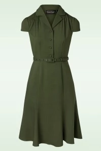 Pucker up, darling, because this dress is ready for some victory rolls and laughter! 😉 She is made of a supple, green fabric with a light stretch for a comfy fit.